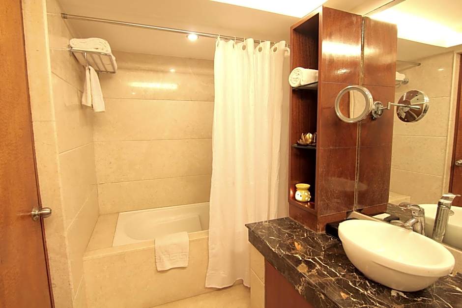 This suite features a tea and coffee maker, a TV and city views. The unit has 1 bed.
